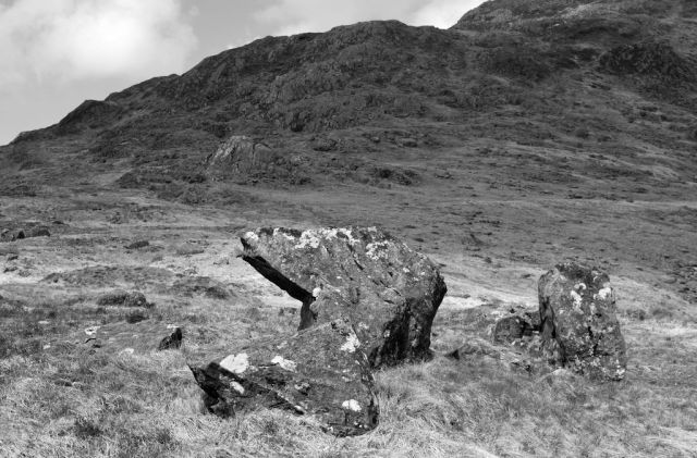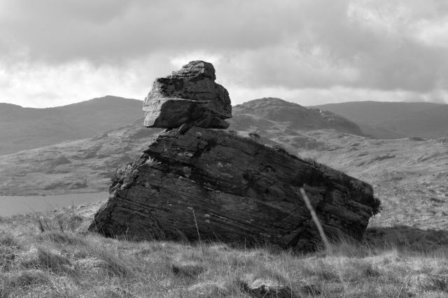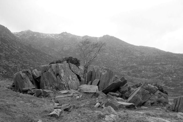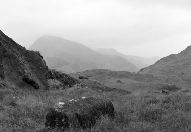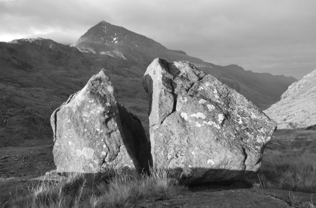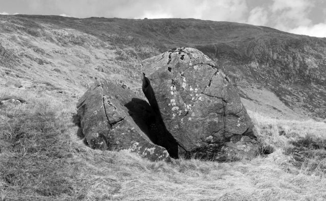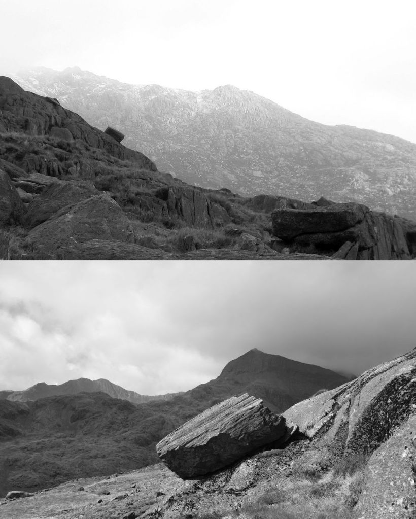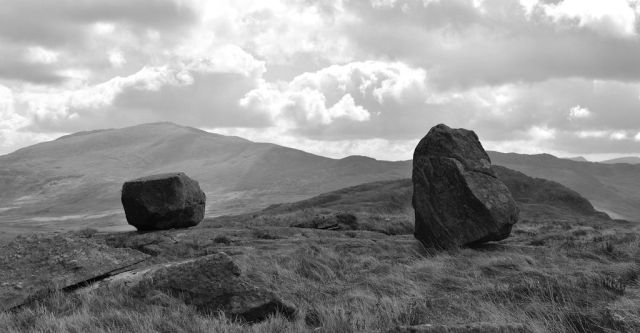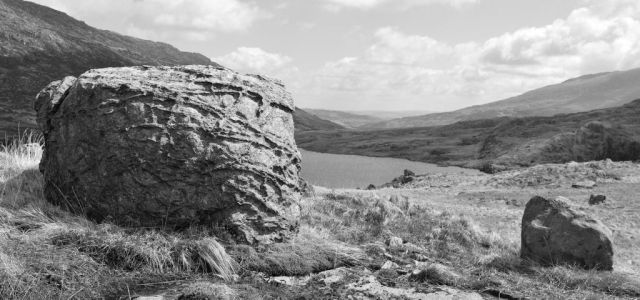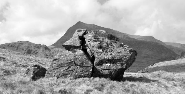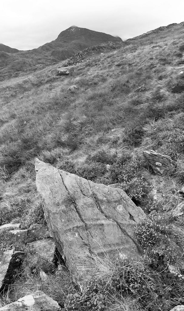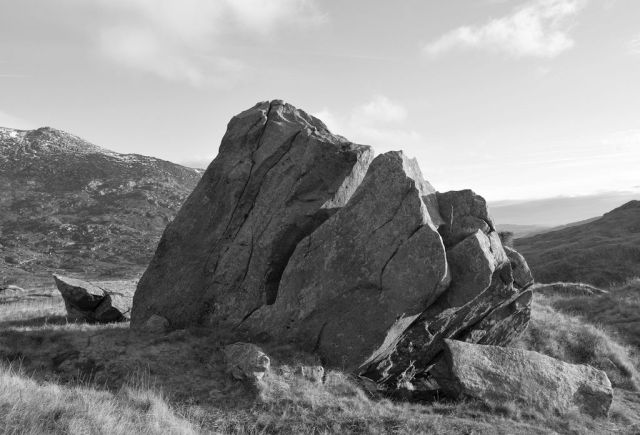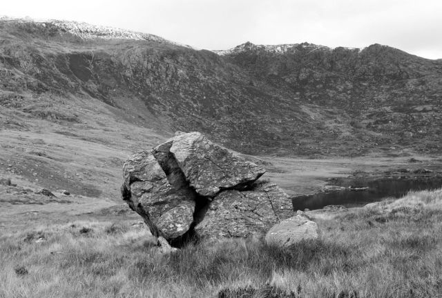 I have wandered around the slopes of Cwmffynnon and Moel Berfedd, Snowdonia, many times over the past twenty five years. The slopes are dotted with boulders deposited by retreating Ice Age glaciers 10,000 years ago. I see it as a kind of sculpture garden and have given a number of the boulders names.
