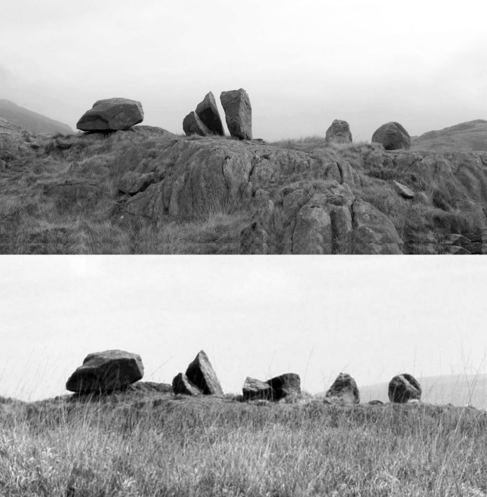 The Row. After having stood there for something like 10,000 years, the central stone of this little collection fell (or was it pushed?) sometime between my visits in 2015 and 2018 and is now broken in two.