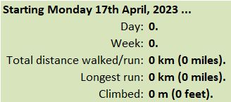 In my 58th year, I think it’s that now-or-never moment. I’m going to run again, starting tomorrow, 17th April. My goal? One kilometer. That’s all. A continuous run of one-thousand metres. That’s my only goal. I’d like to run much, much further, but that’s just idle day-dreaming. One kilometer is all I’m after, starting tomorrow.