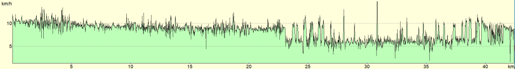 I was surprised how moving forward at a run became so much more difficult after the halfway mark, and (writing this two weeks after the event) remember how afterward the lower half of my body felt pretty beaten-up. There was even discomfort in my biceps. Swinging the arms backwards and forewards for such a long period obviously had an effect.
