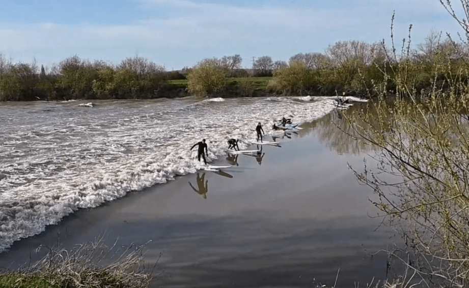 Hi to Sarah and the couple of surfers who were kind enough to chat. One of the surfers mentioned he’d managed to ride the wave three miles one time, although today the wave got the better of him.