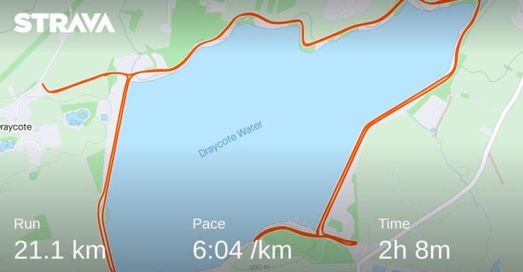 Success. My goal was sub-six hours, and managed it in 5:39:54 according to Strava. Ran three circuits of Draycote, 14.3 miles (23 kilometres), but then reduced to a mixture of walking and running, managing to run most of the final two miles. I estimate I ran about 65-70% of the total distance.