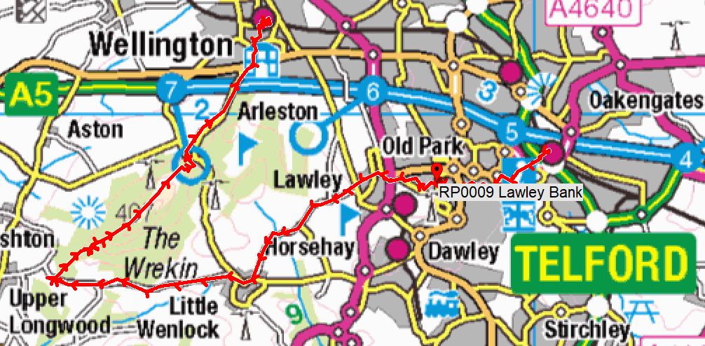 Half-a-day out by train, walking from Telford Central to Wellington railway stations, 12½ miles, taking in The Wrekin on the way.