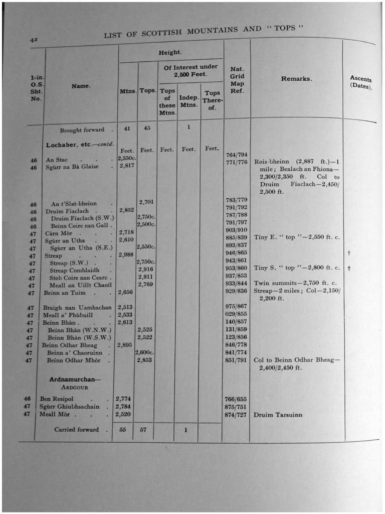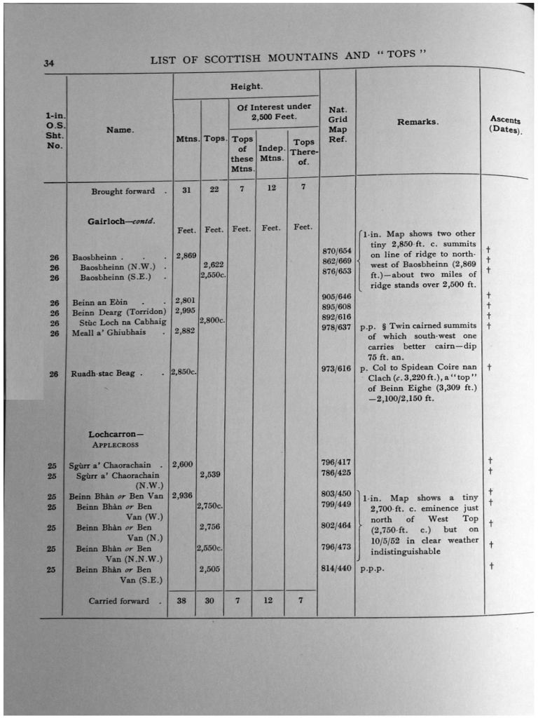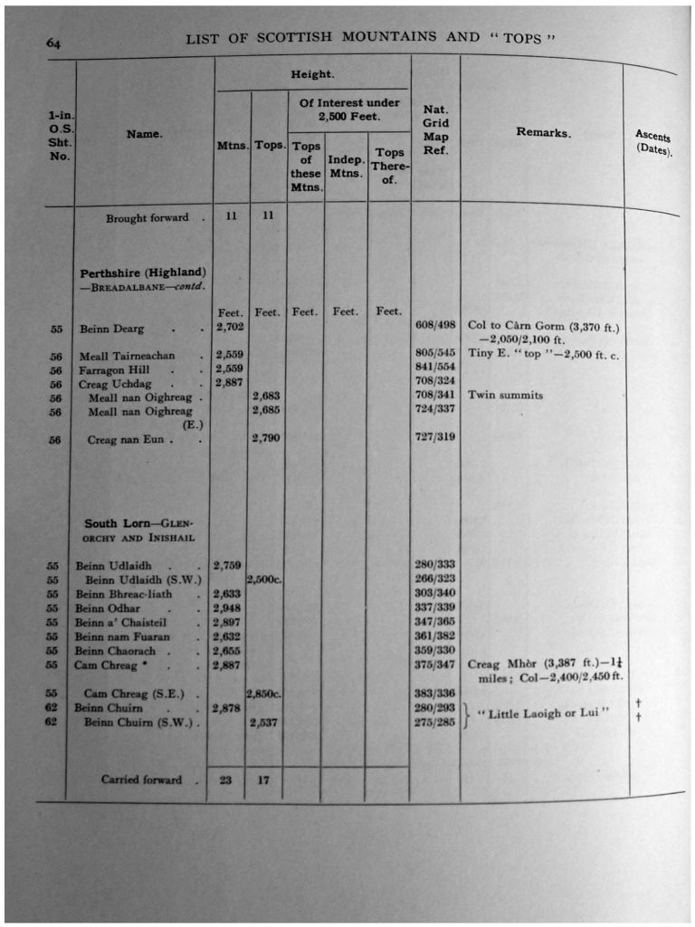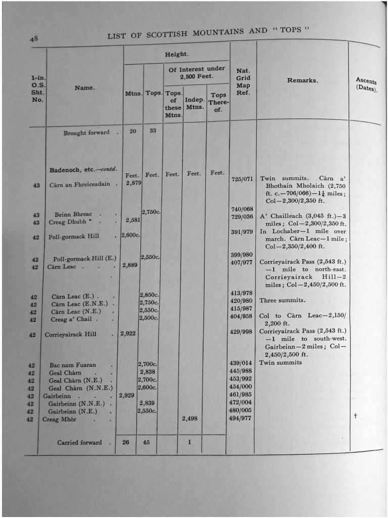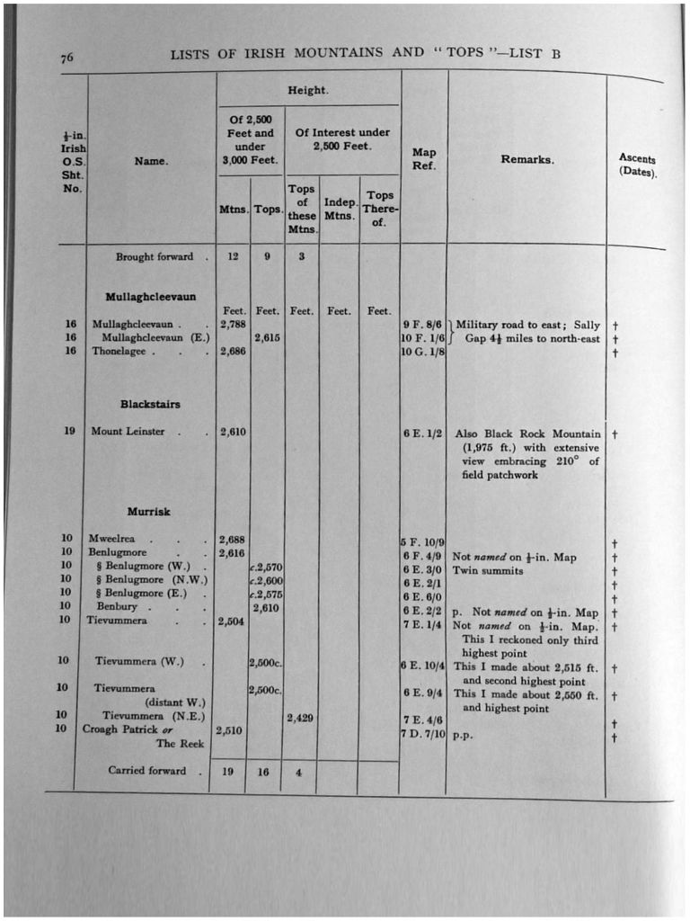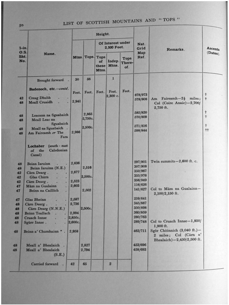 Source: Docharty, W. M. (1954) A Selection of some 900 British and Irish Mountain Tops. Edinburgh: Darien Press.