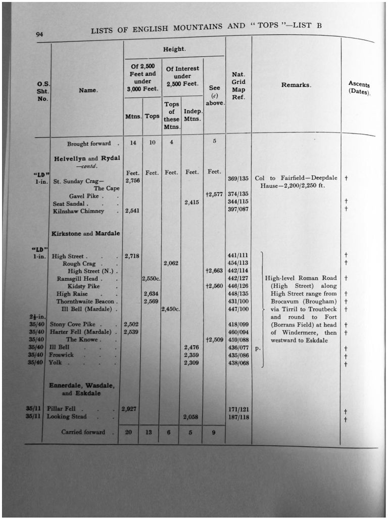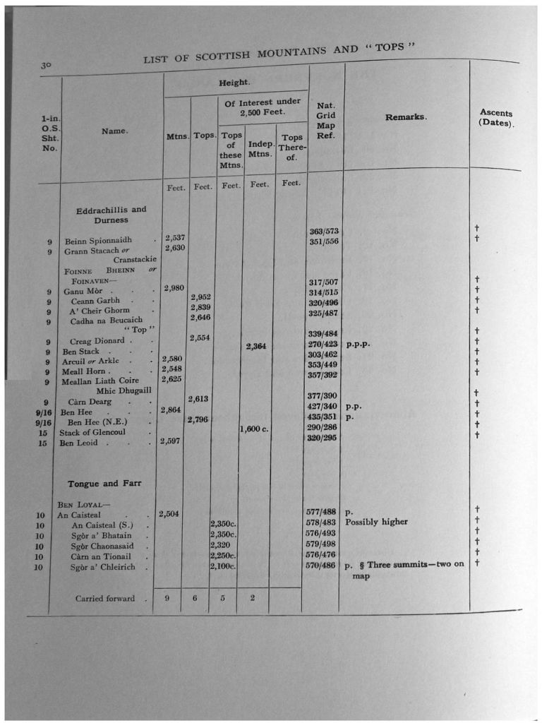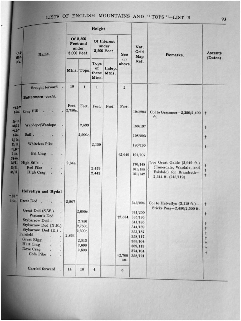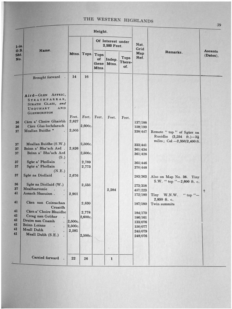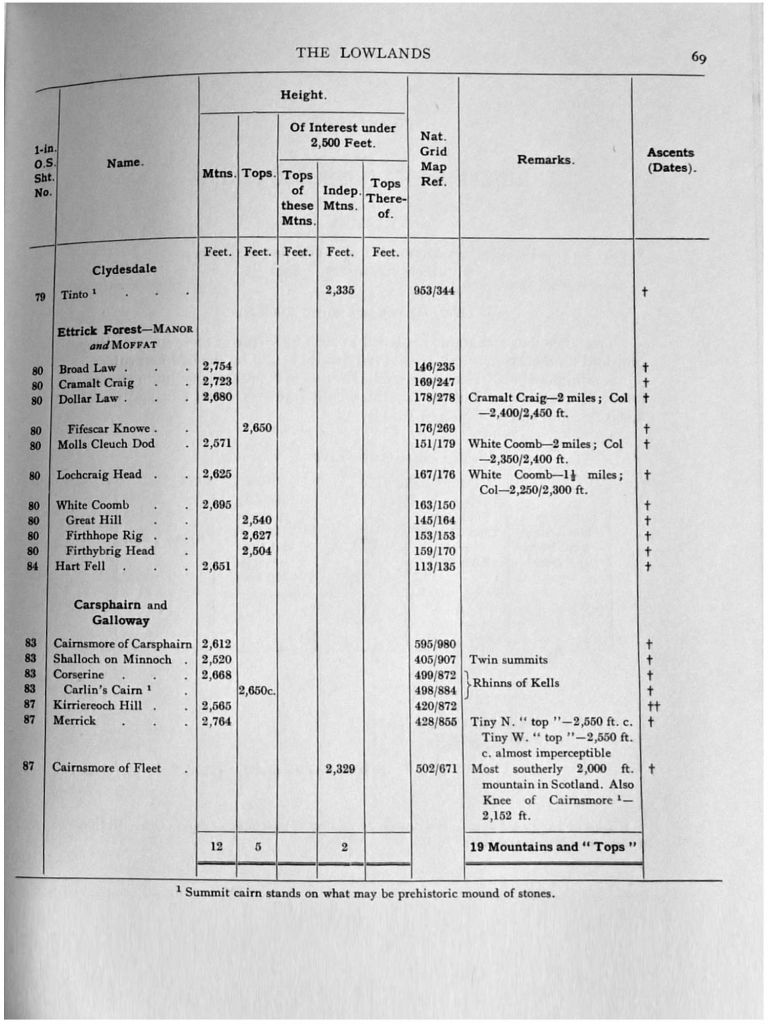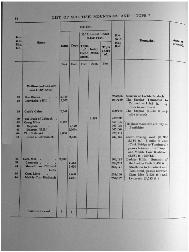 Source: Docharty, W. M. (1954) A Selection of some 900 British and Irish Mountain Tops. Edinburgh: Darien Press.