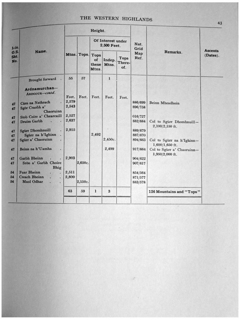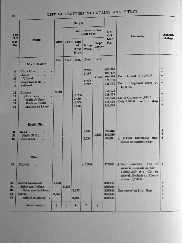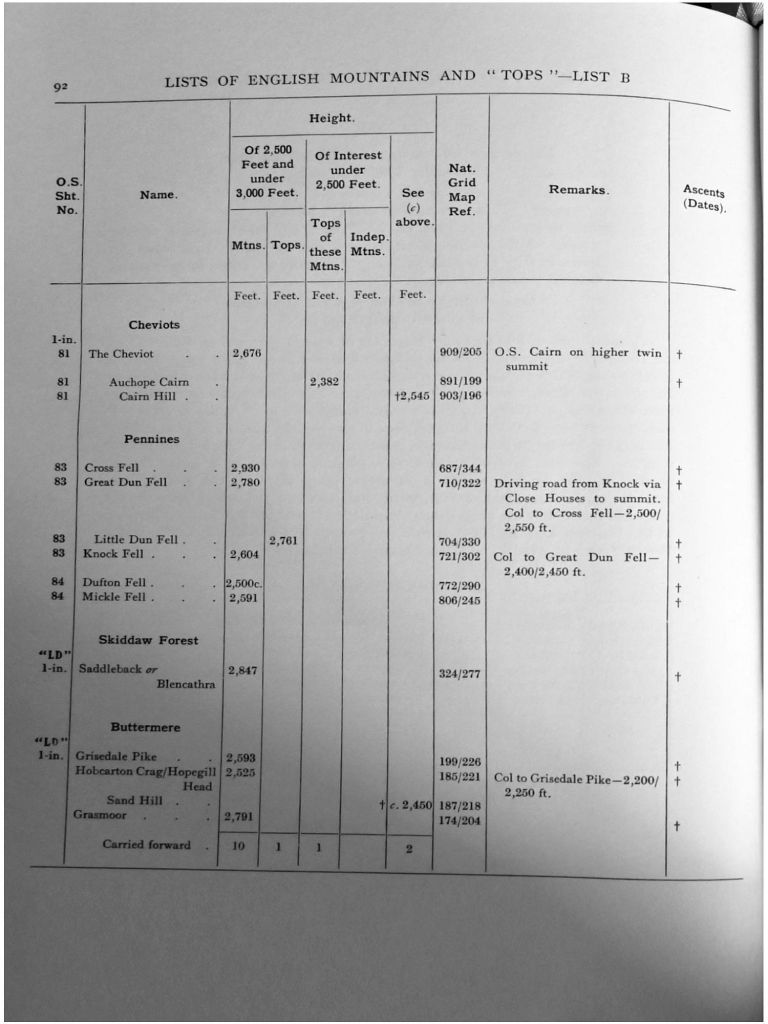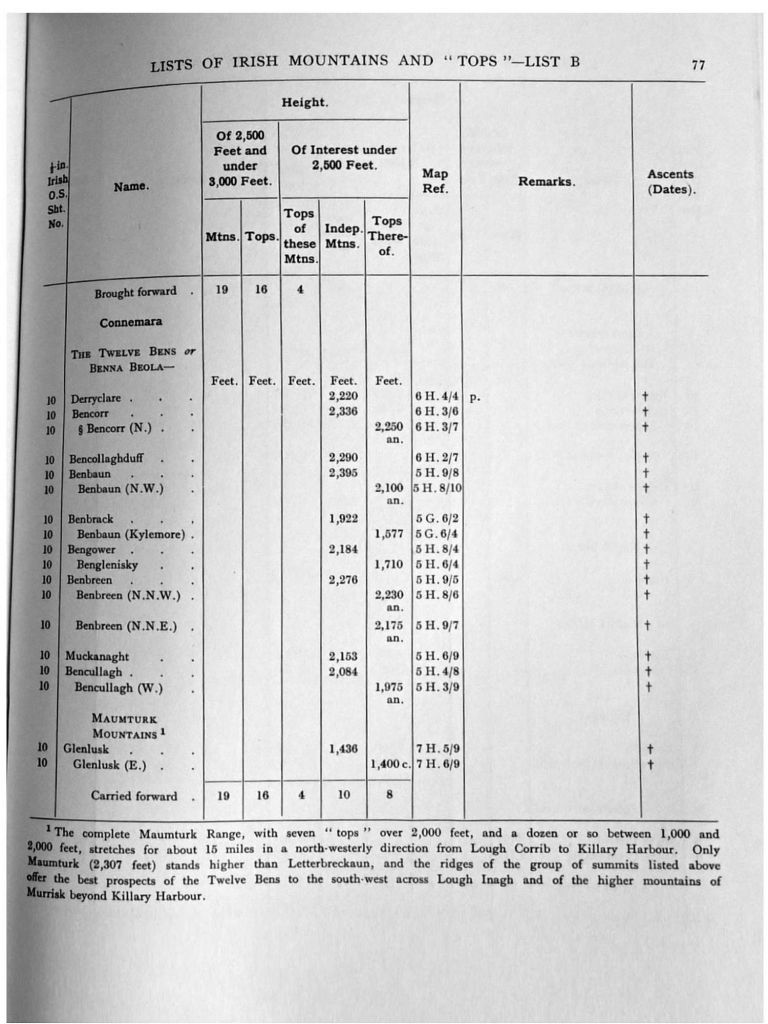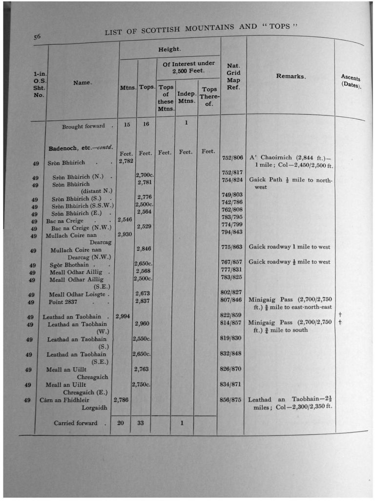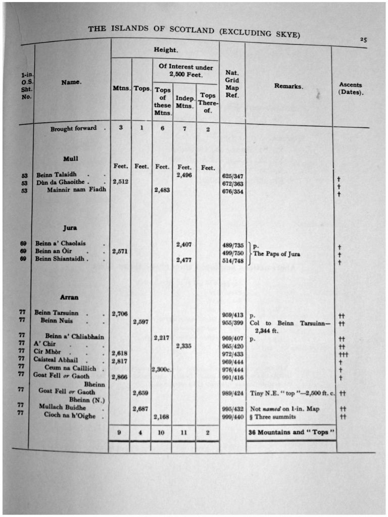 Source: Docharty, W. M. (1954) A Selection of some 900 British and Irish Mountain Tops. Edinburgh: Darien Press.