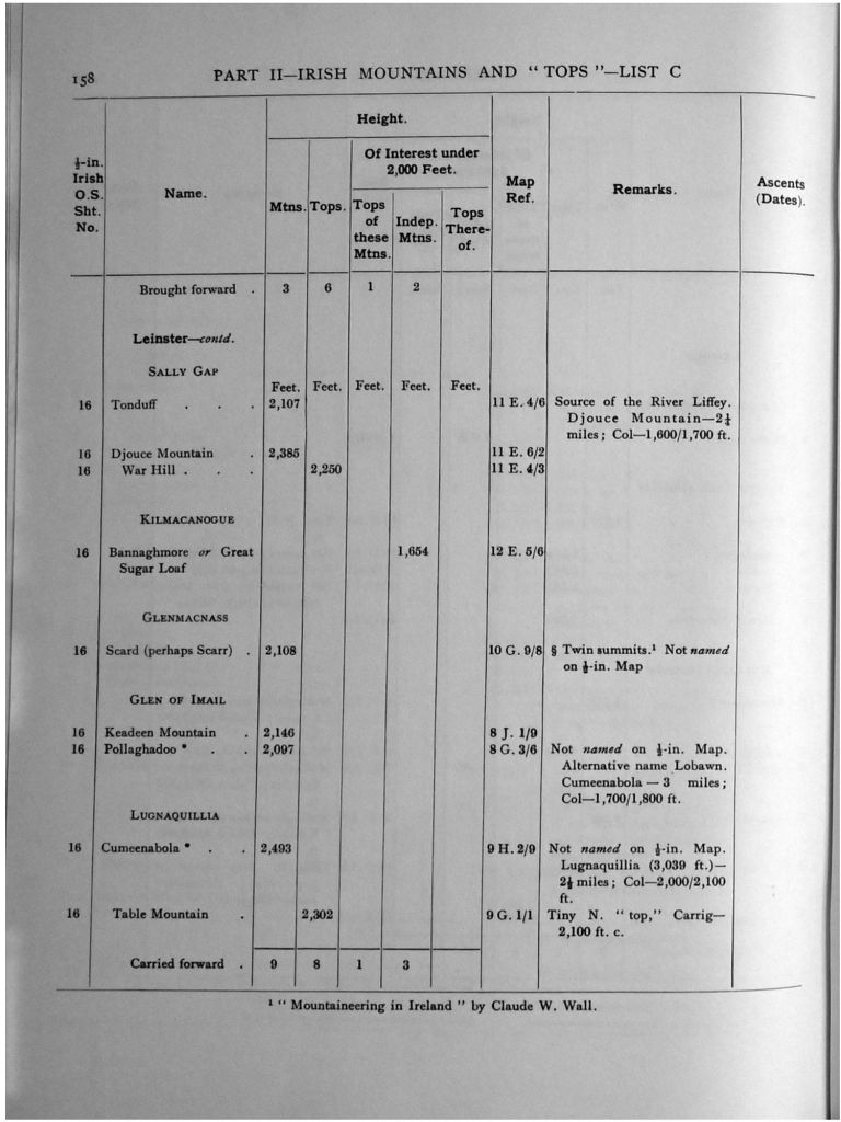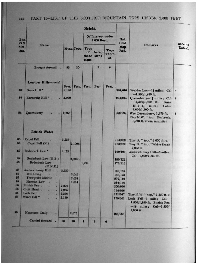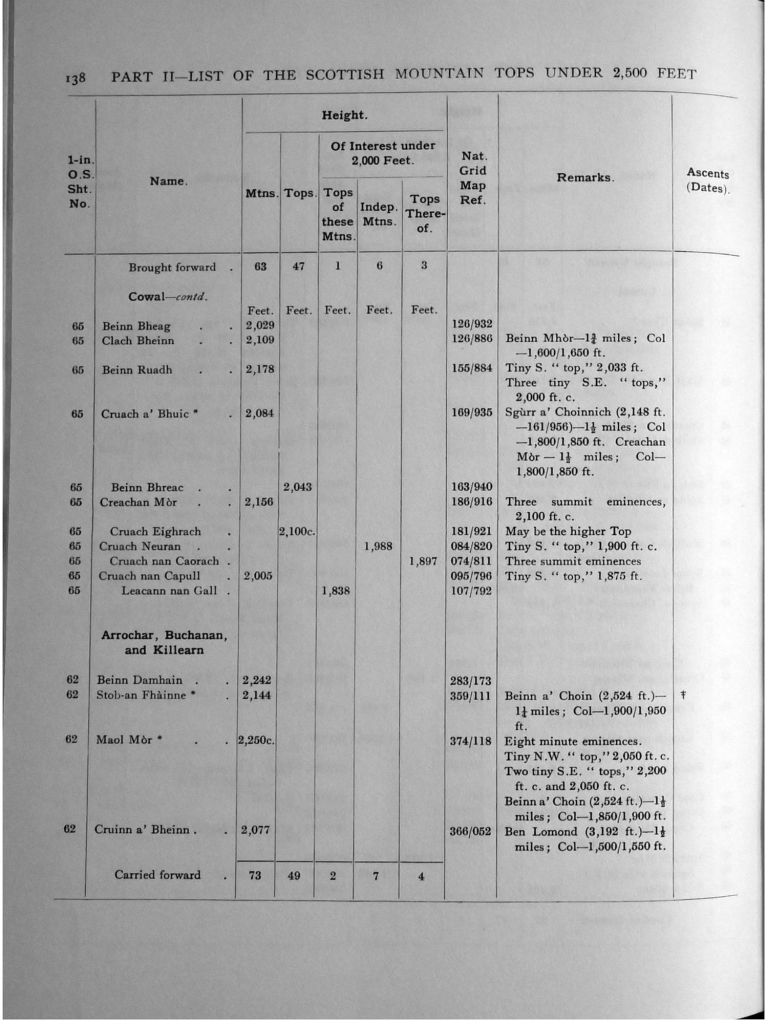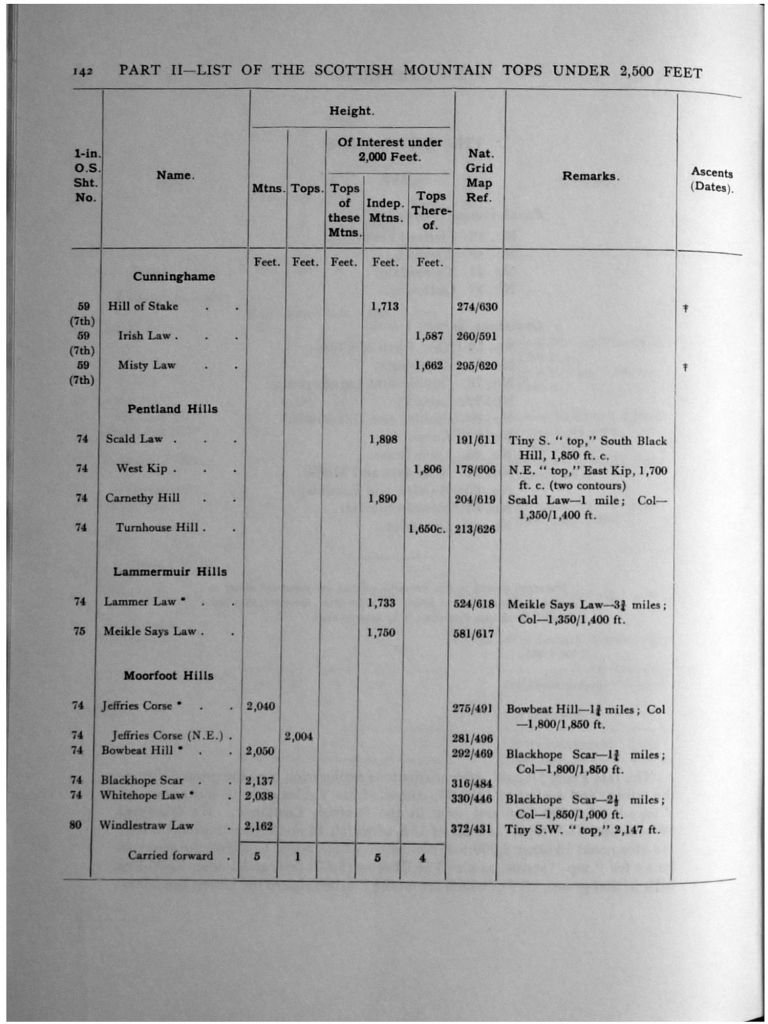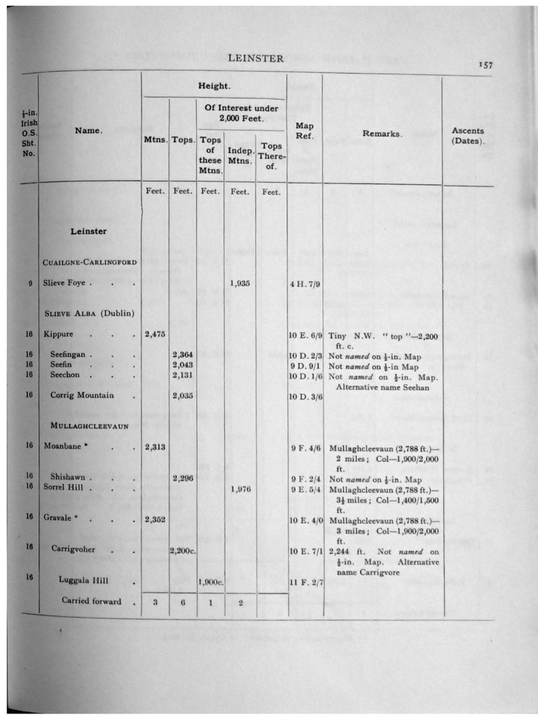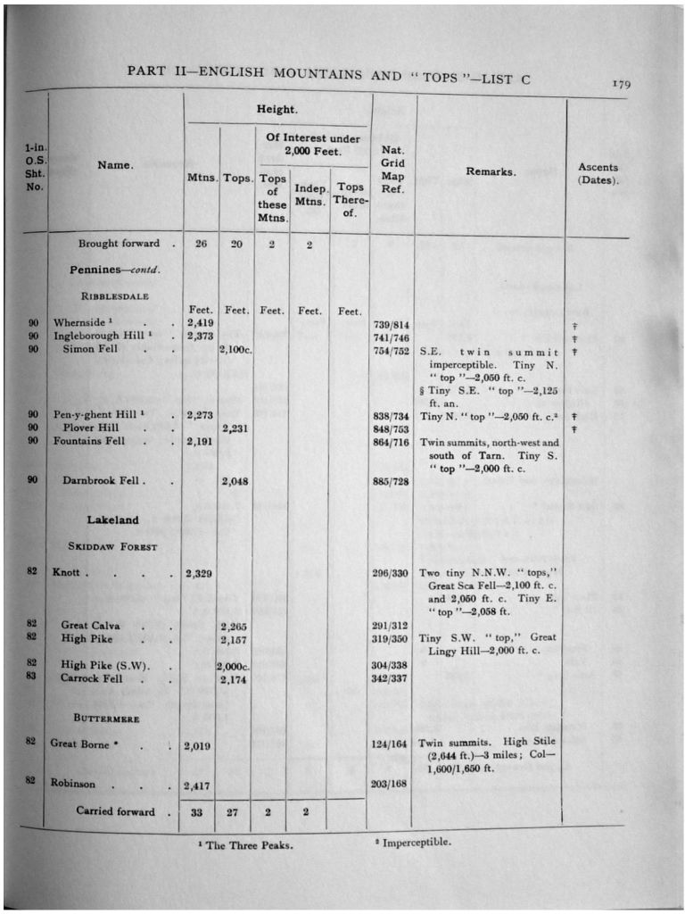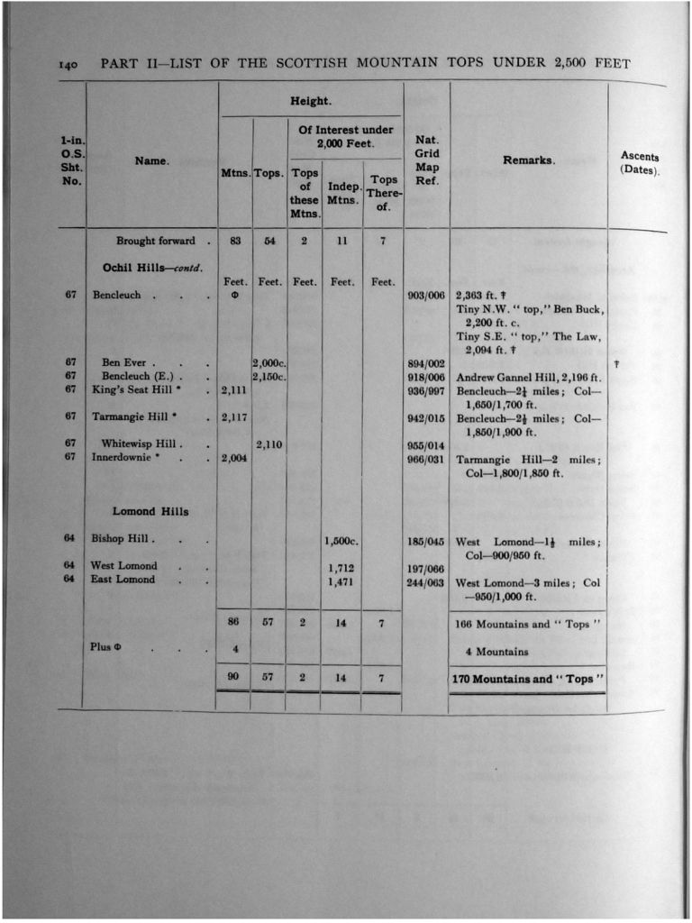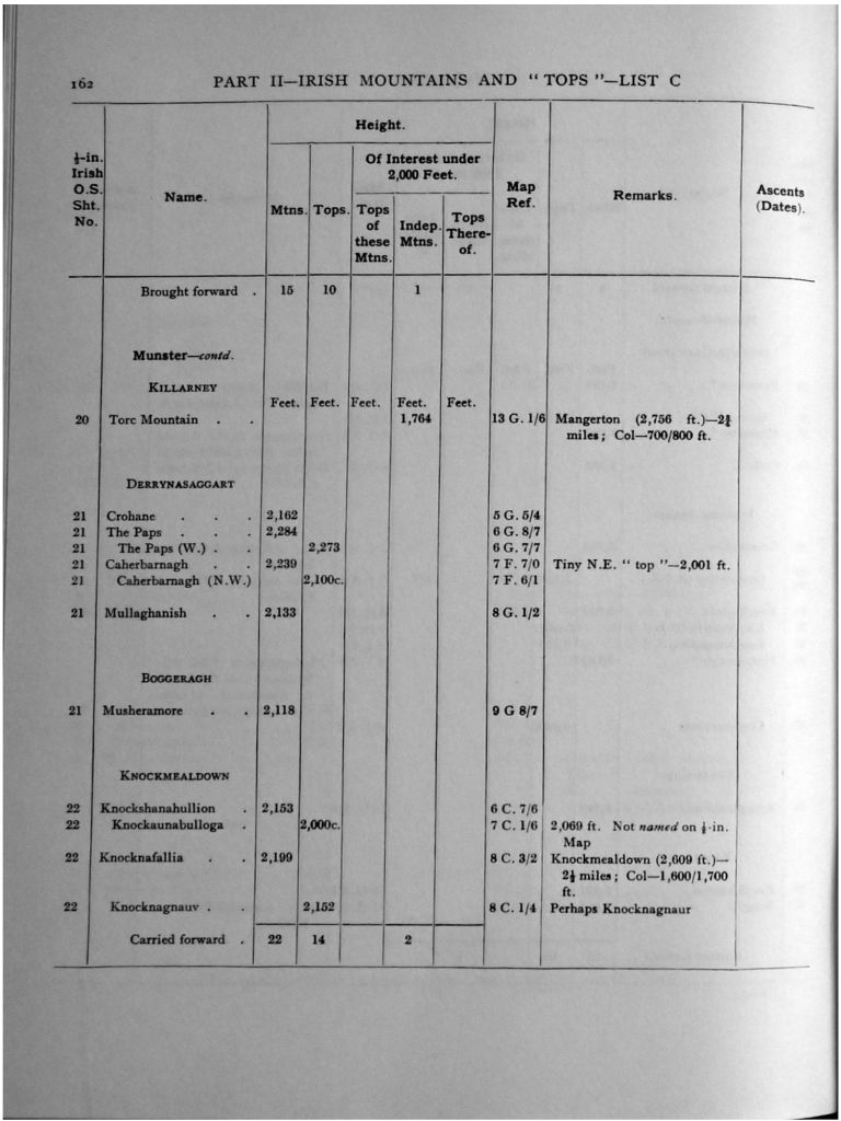 Source: Docharty, W. M. (1962) The Suppliment to A Selection of some 900 British and Irish Mountain Tops and A Selection of 1,000 Tops under 2,500 Feet – volume I. Edinburgh: Darien Press.