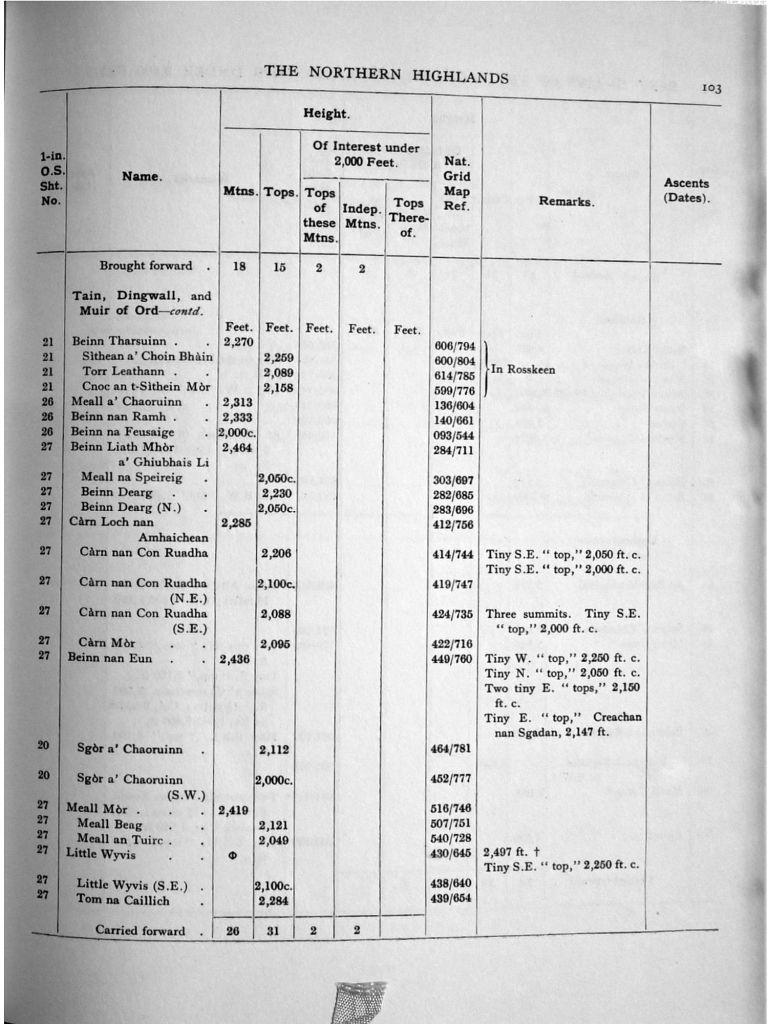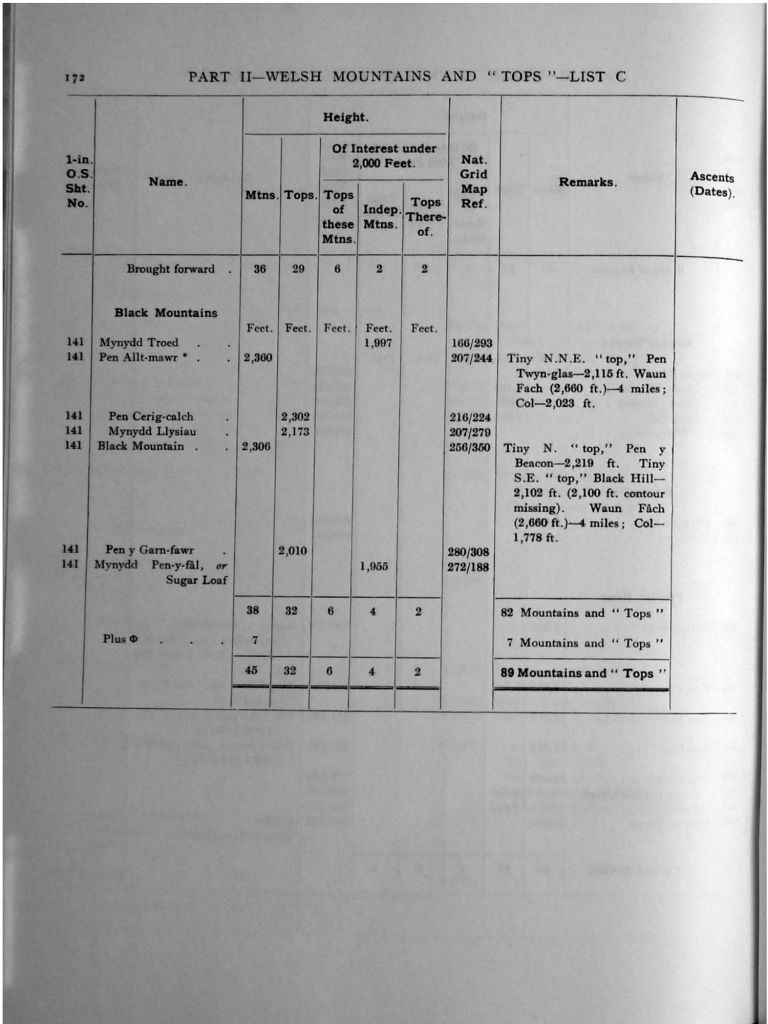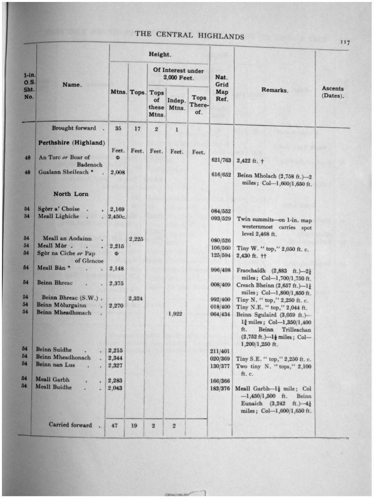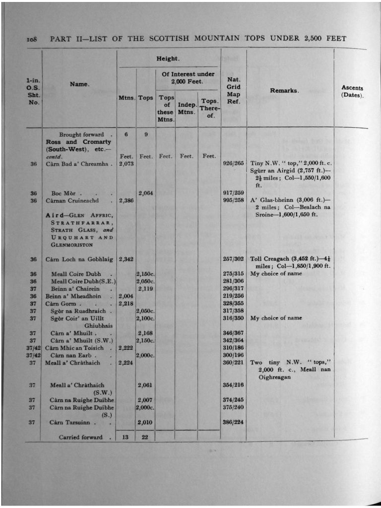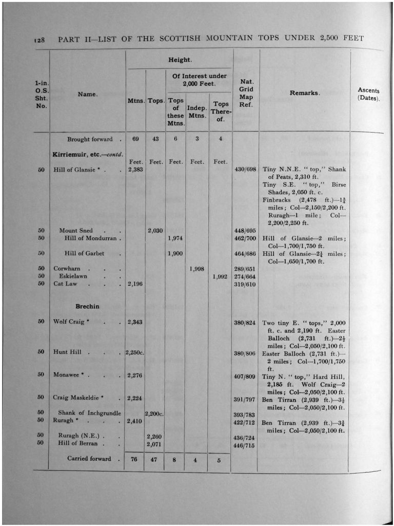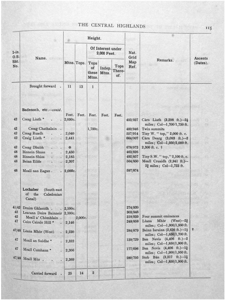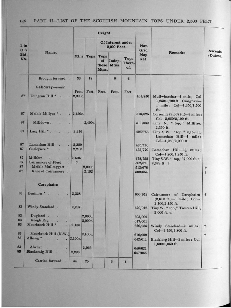 Source: Docharty, W. M. (1962) The Suppliment to A Selection of some 900 British and Irish Mountain Tops and A Selection of 1,000 Tops under 2,500 Feet – volume I. Edinburgh: Darien Press.