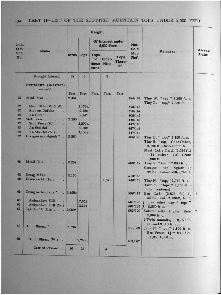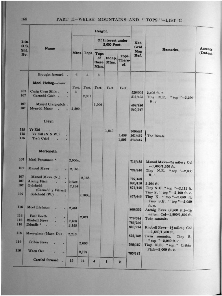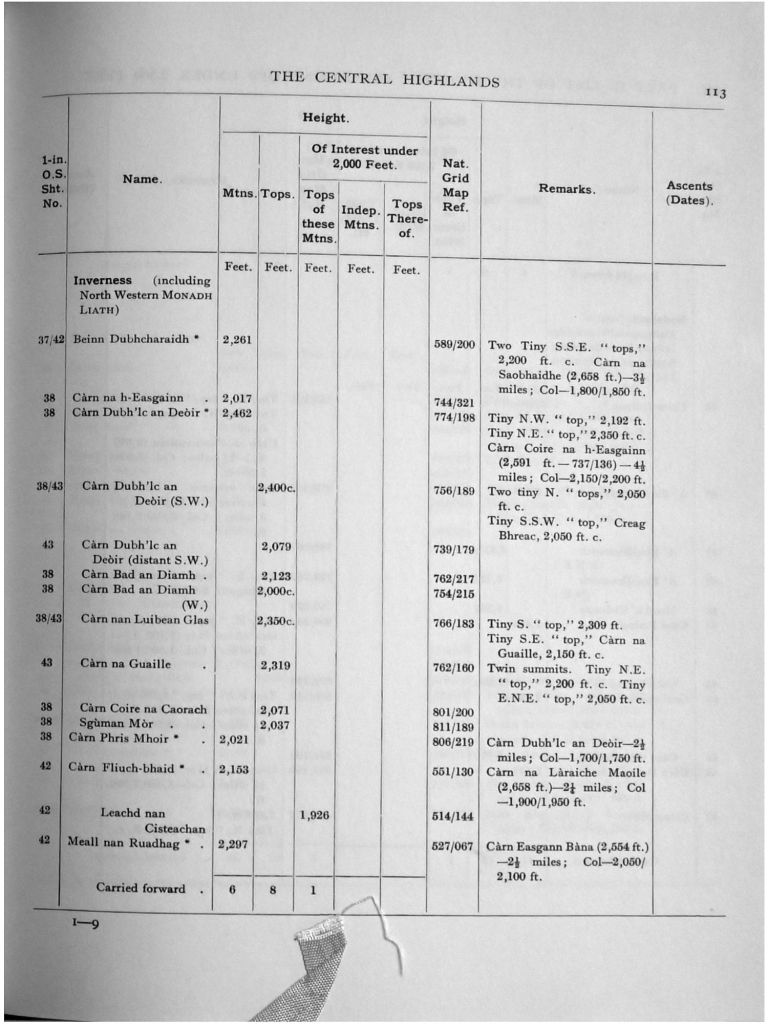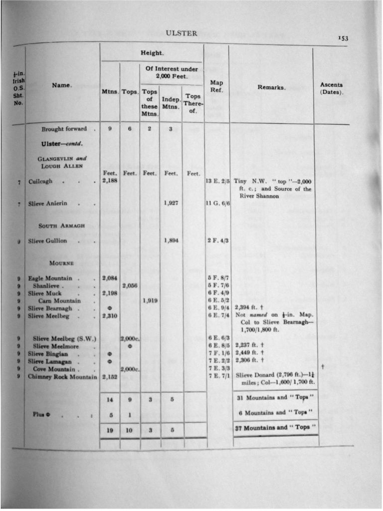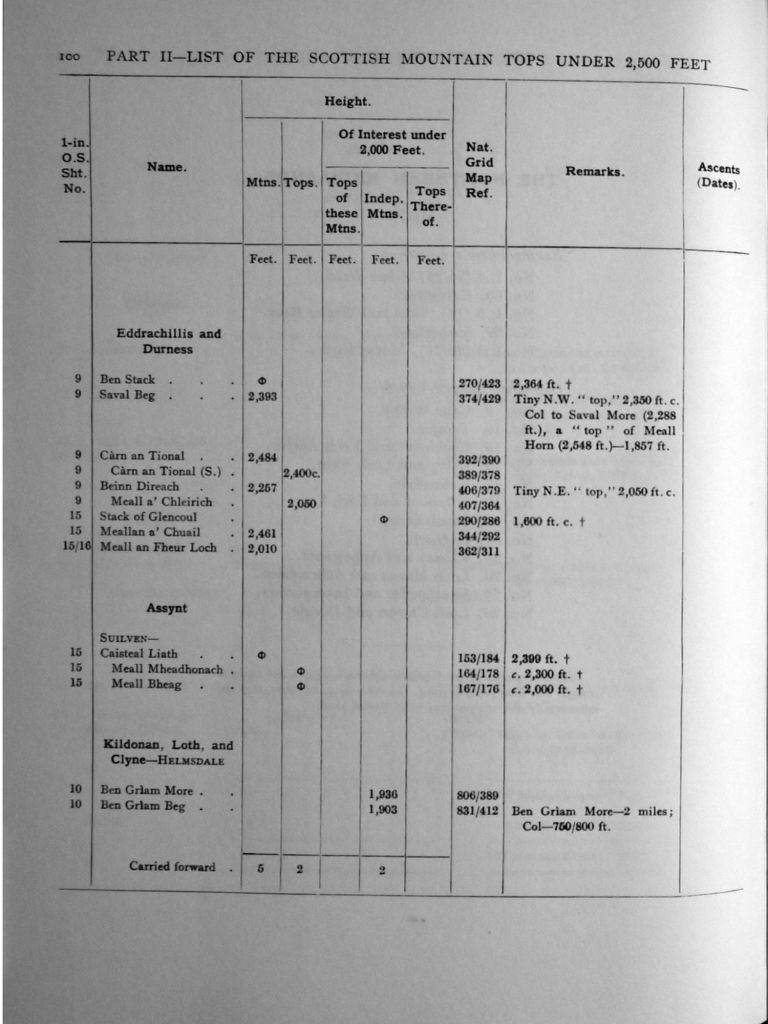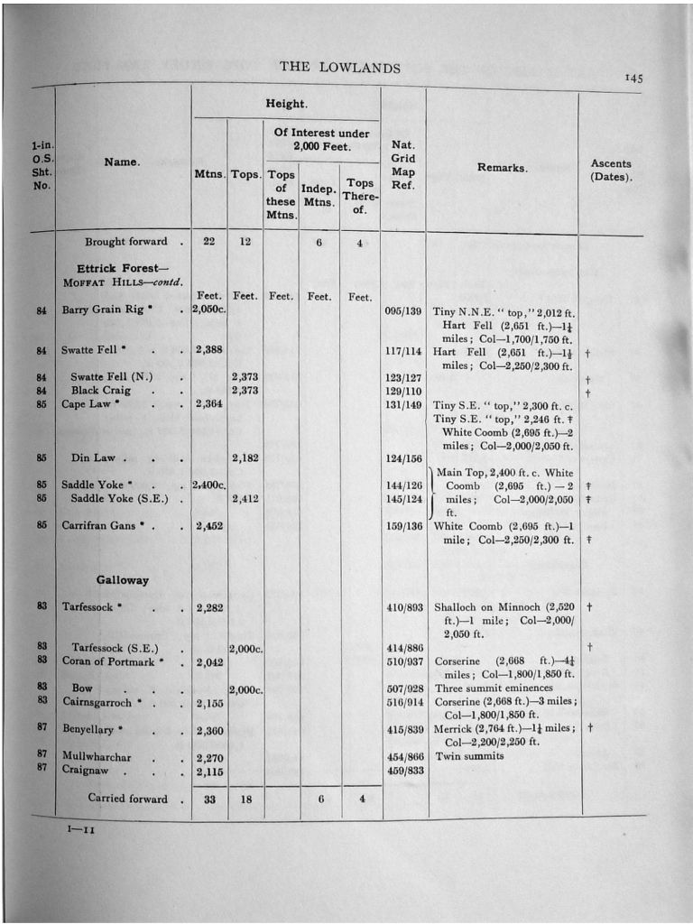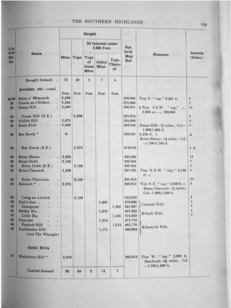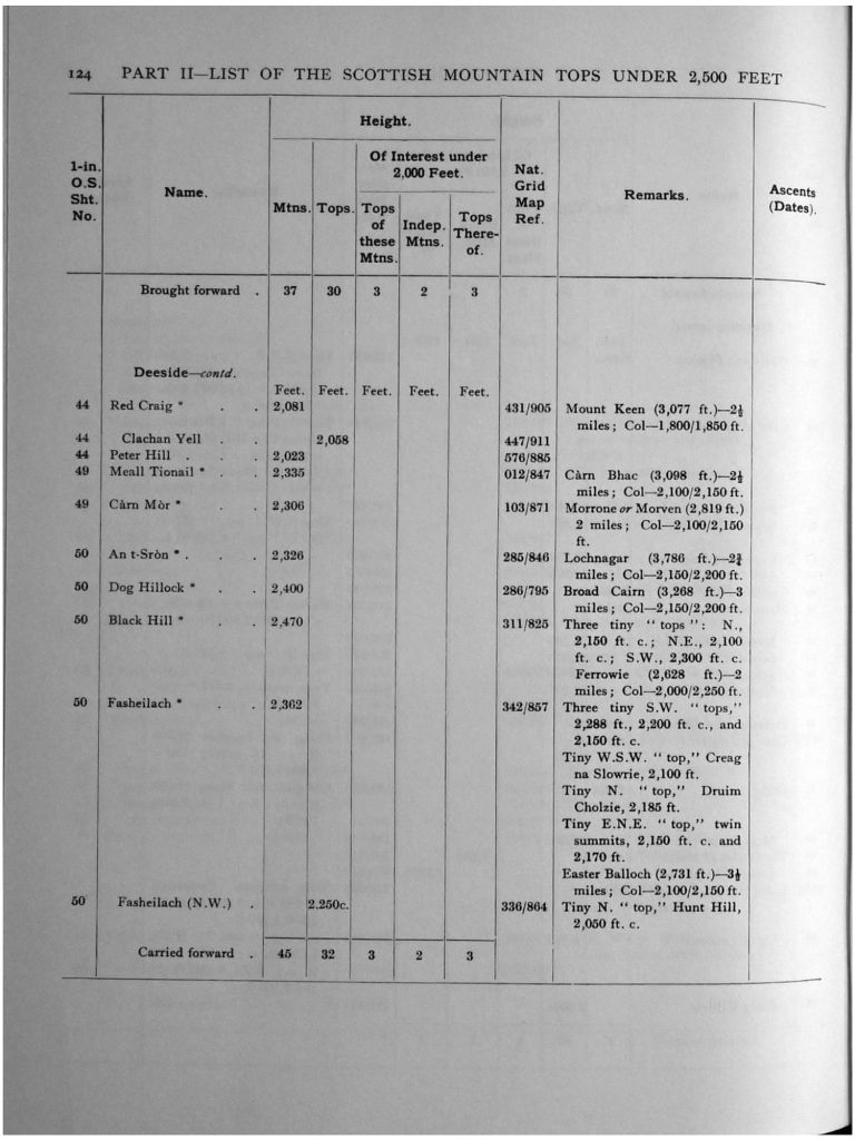 Source: Docharty, W. M. (1962) The Suppliment to A Selection of some 900 British and Irish Mountain Tops and A Selection of 1,000 Tops under 2,500 Feet – volume I. Edinburgh: Darien Press.