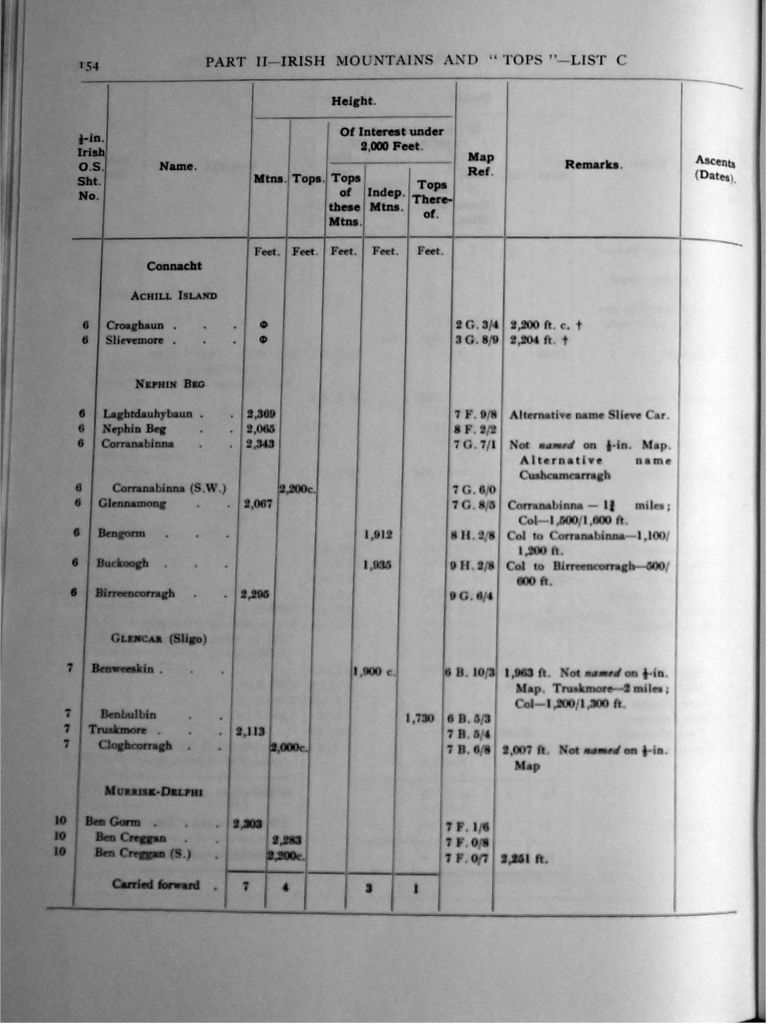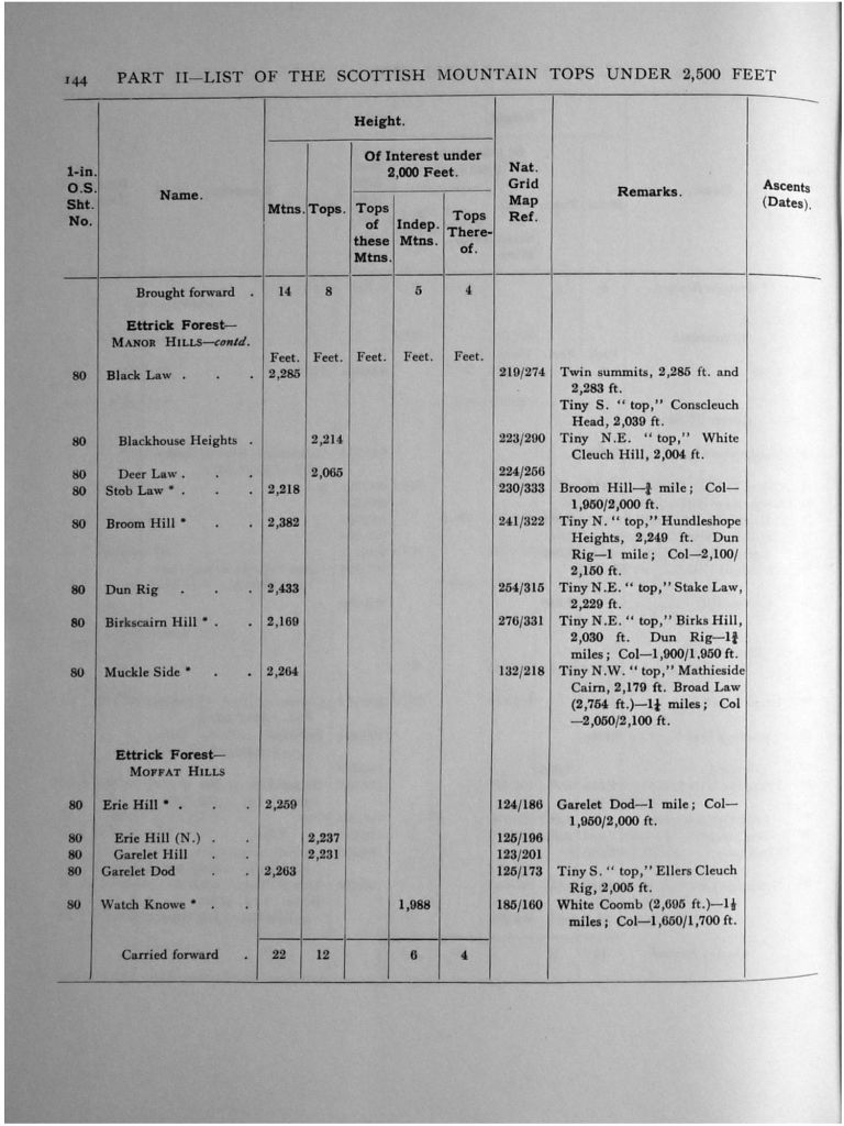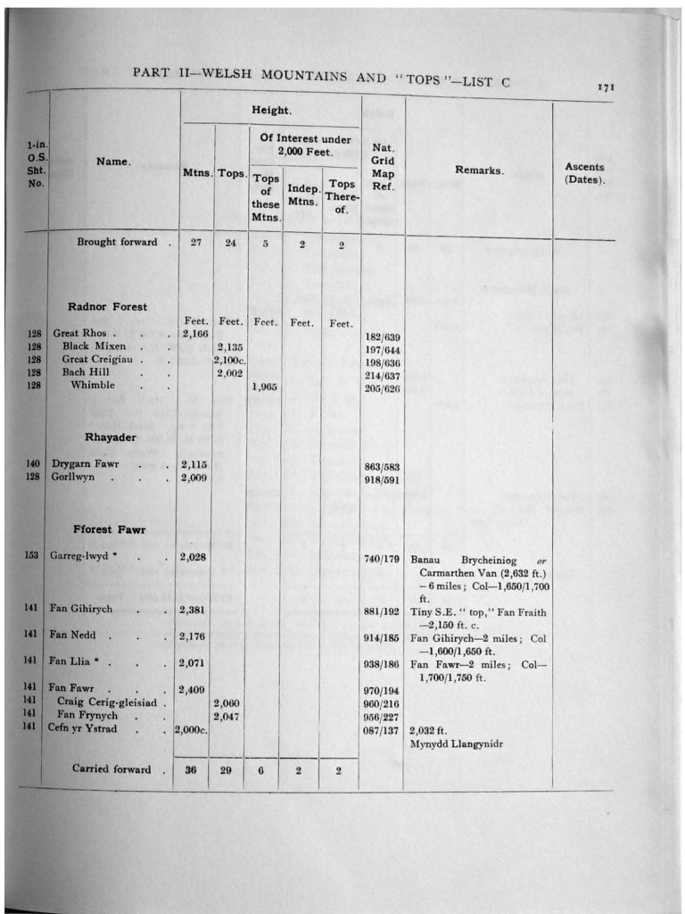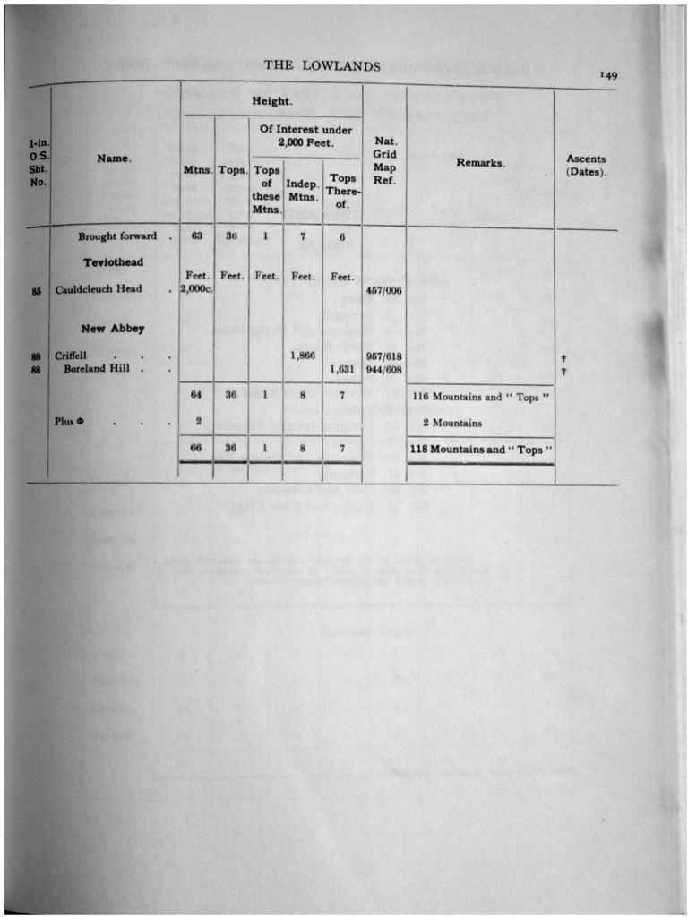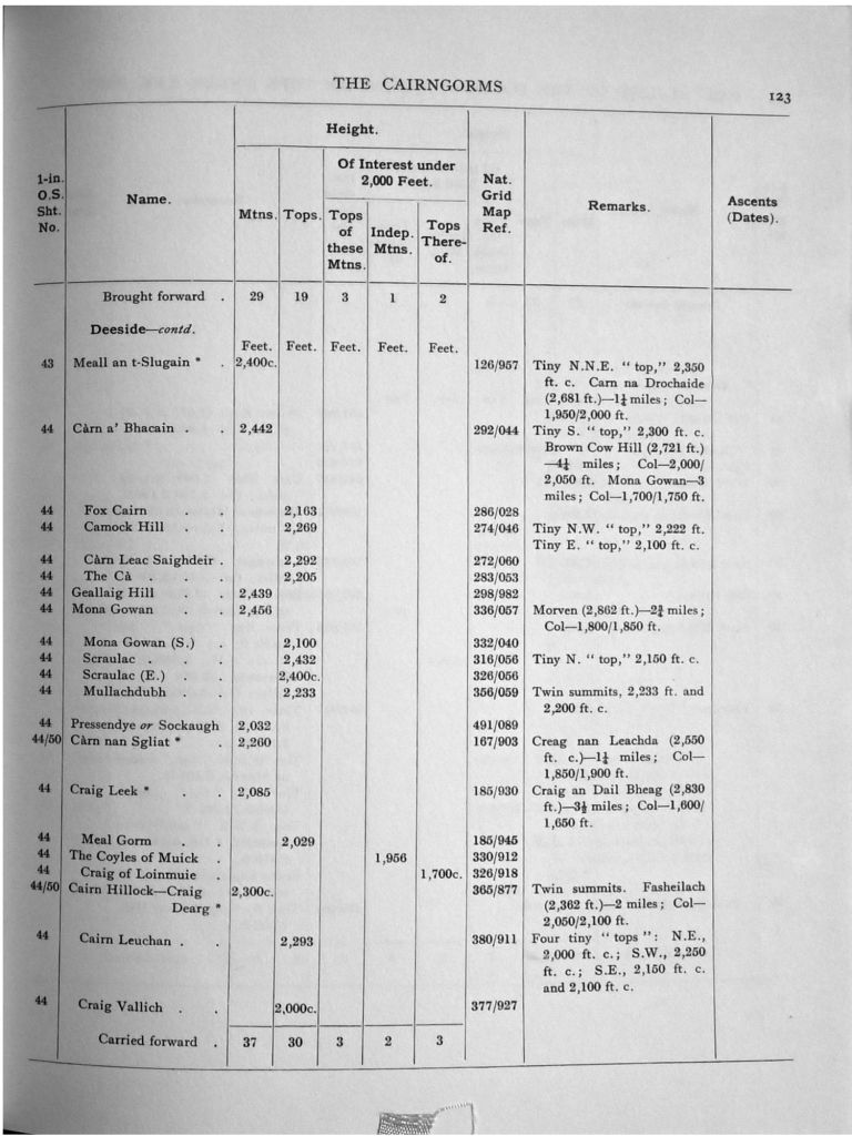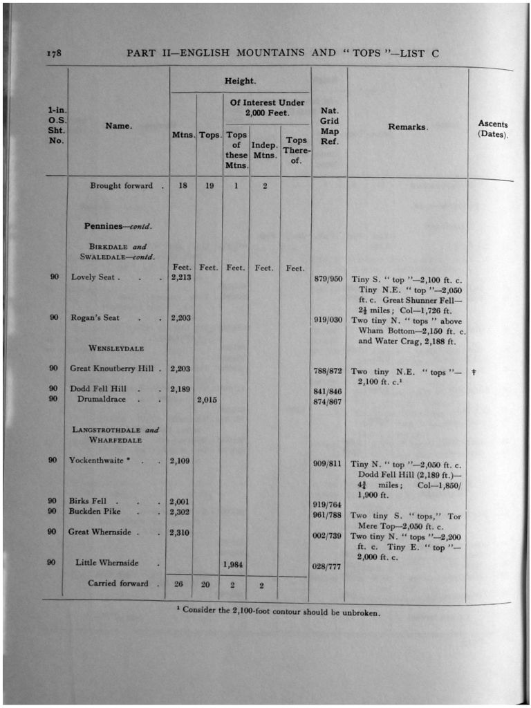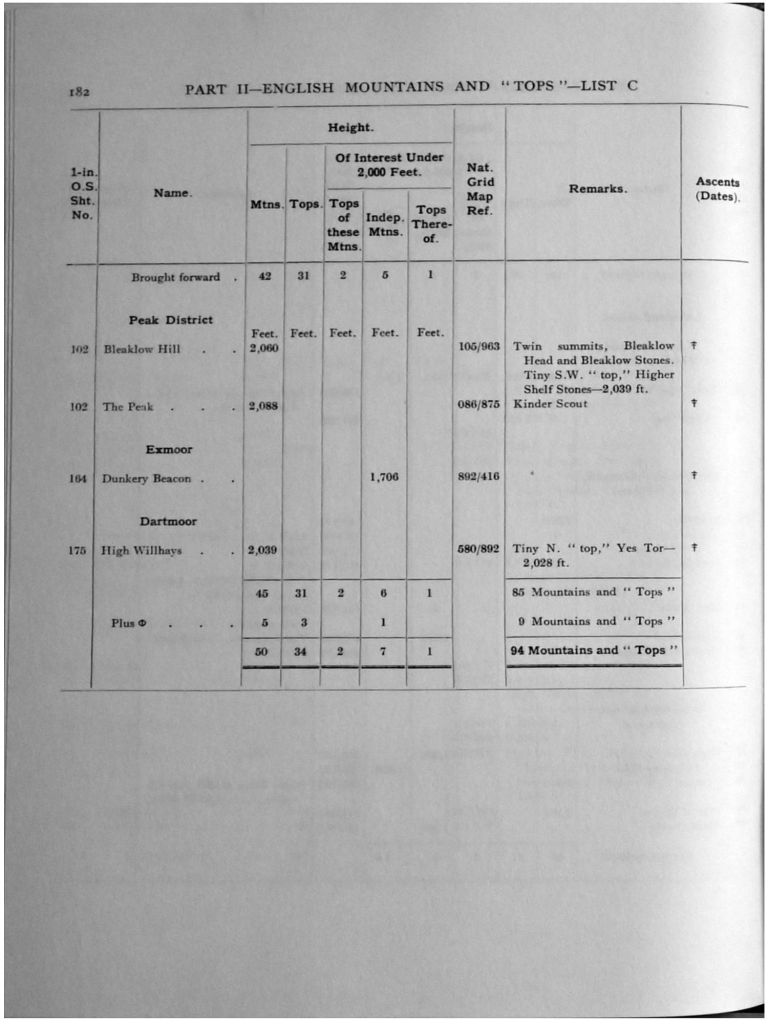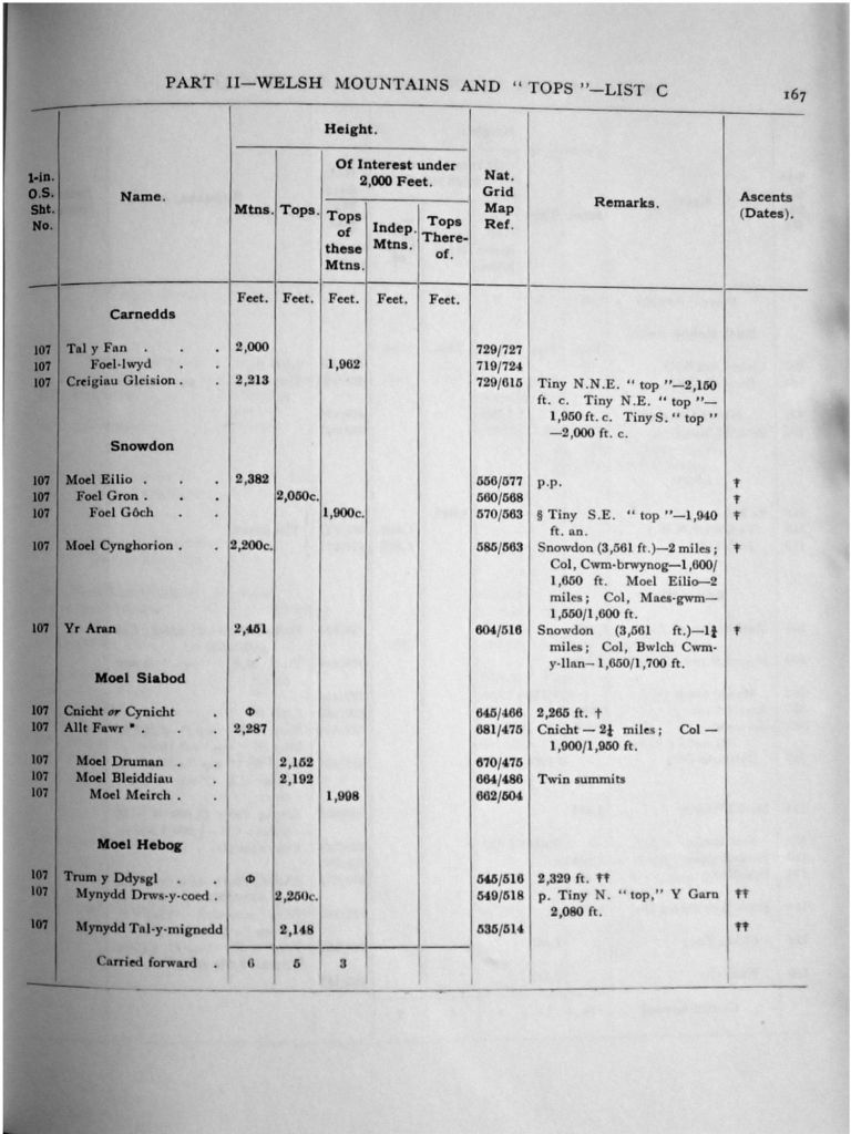 Source: Docharty, W. M. (1962) The Suppliment to A Selection of some 900 British and Irish Mountain Tops and A Selection of 1,000 Tops under 2,500 Feet – volume I. Edinburgh: Darien Press.
