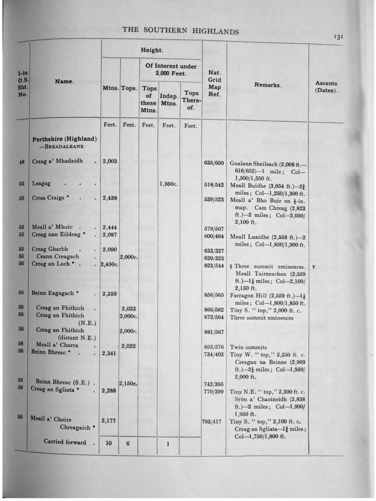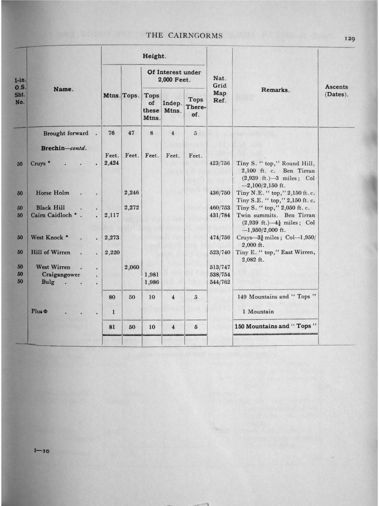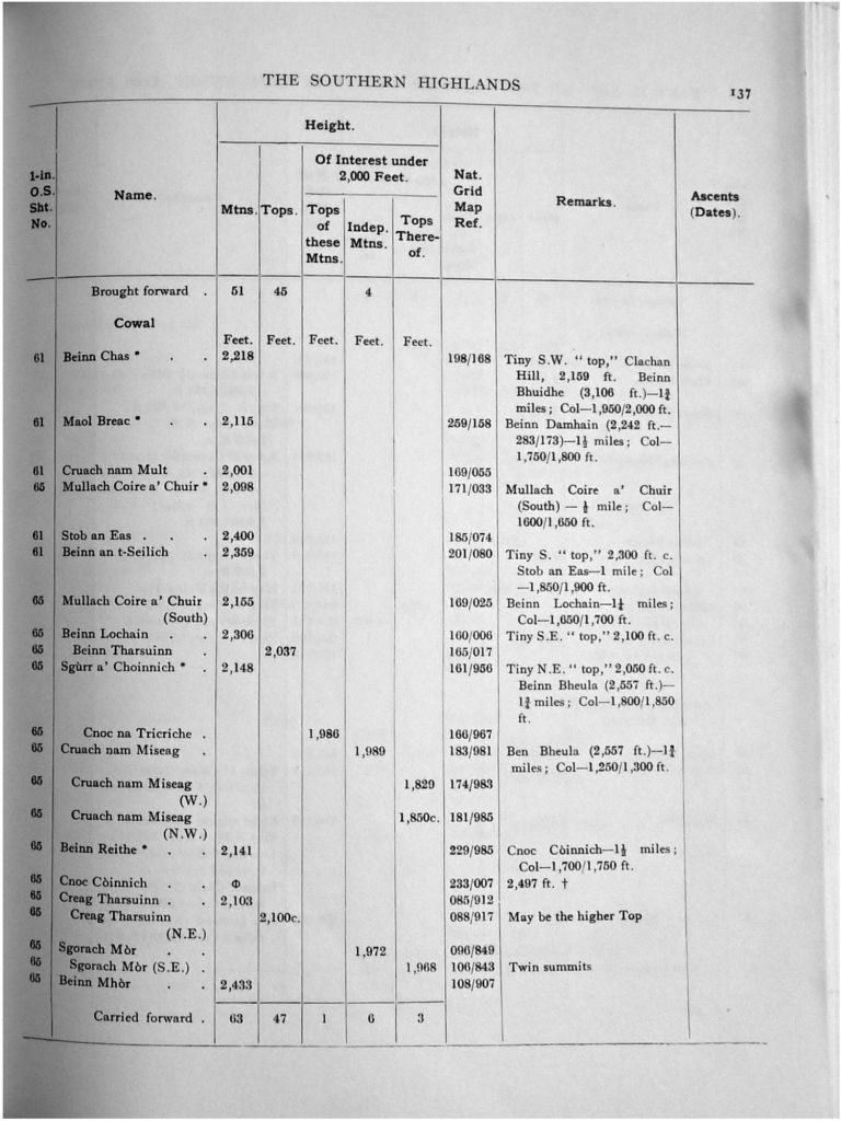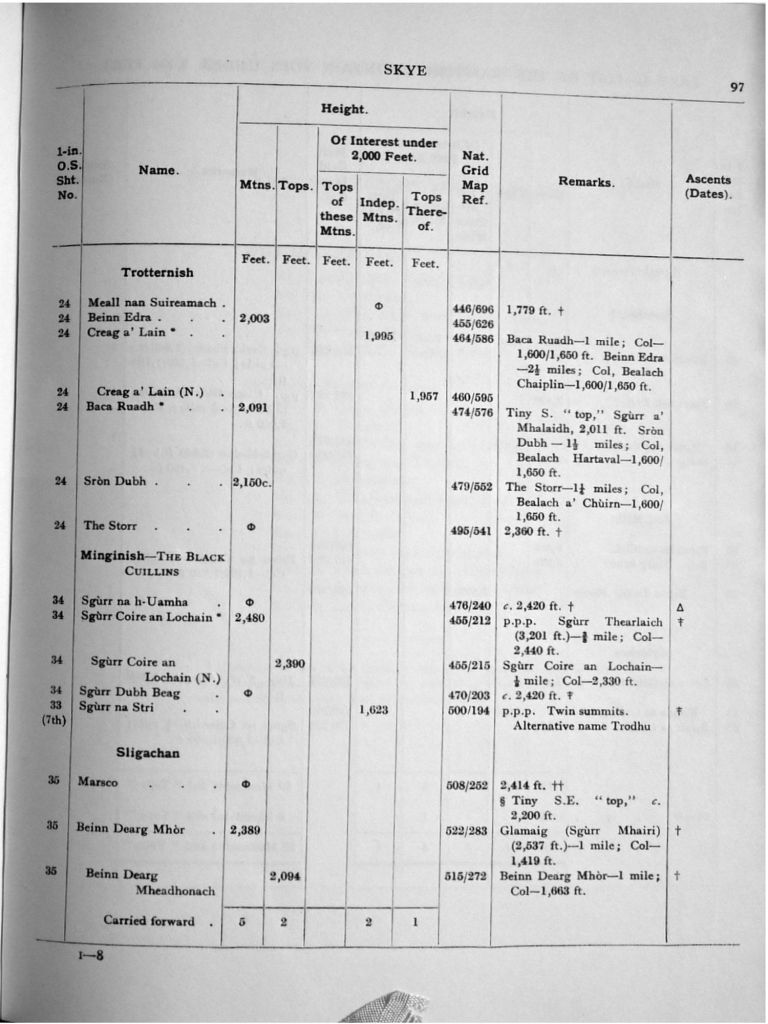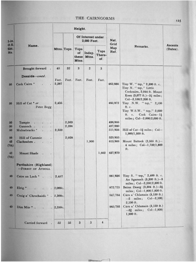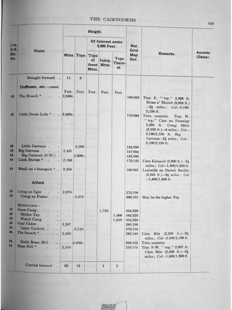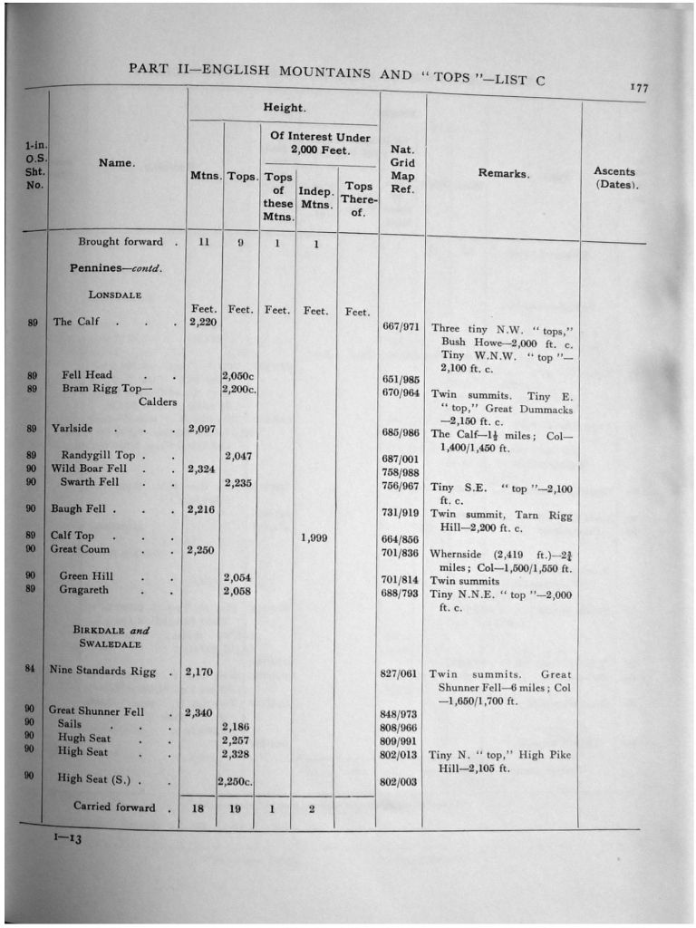 Source: Docharty, W. M. (1962) The Suppliment to A Selection of some 900 British and Irish Mountain Tops and A Selection of 1,000 Tops under 2,500 Feet – volume I. Edinburgh: Darien Press.