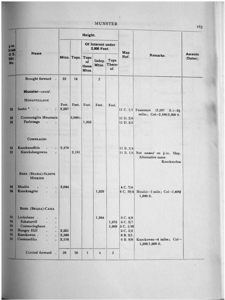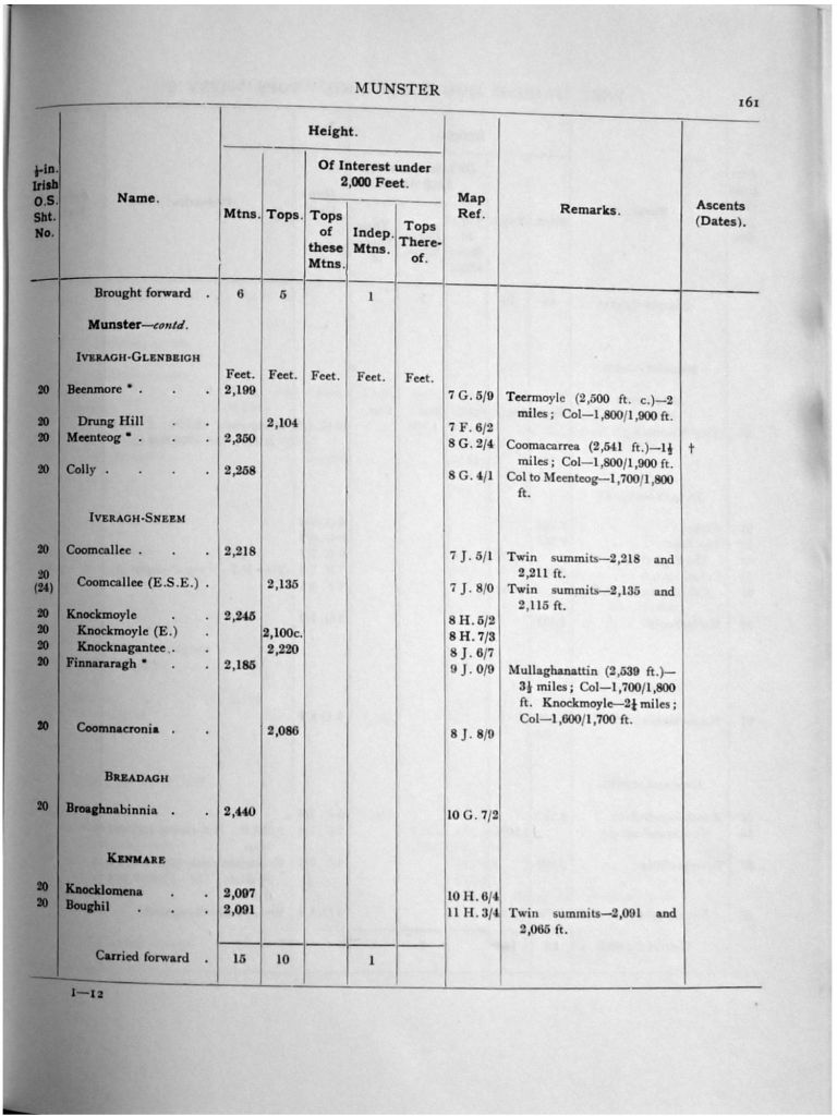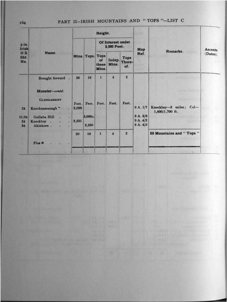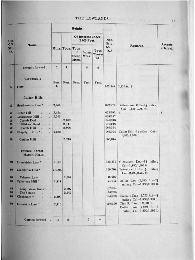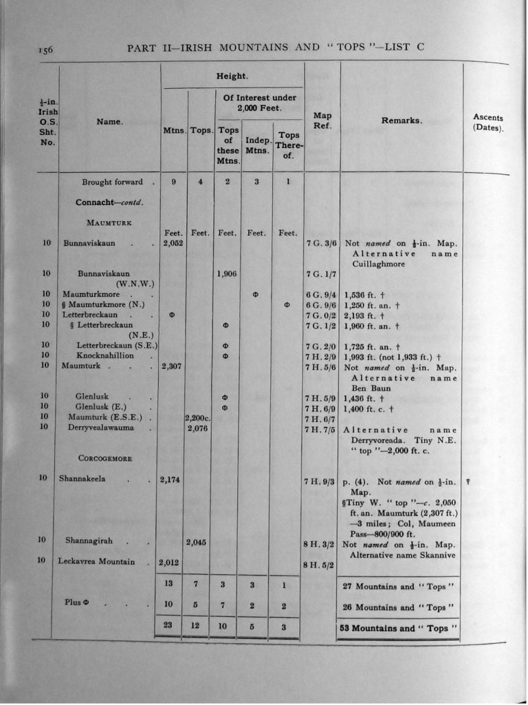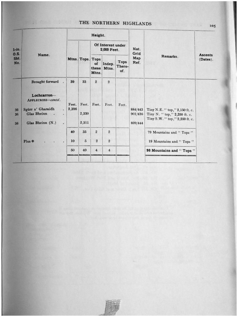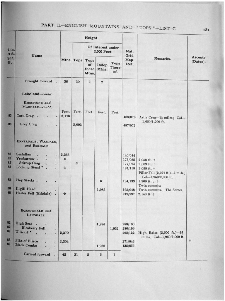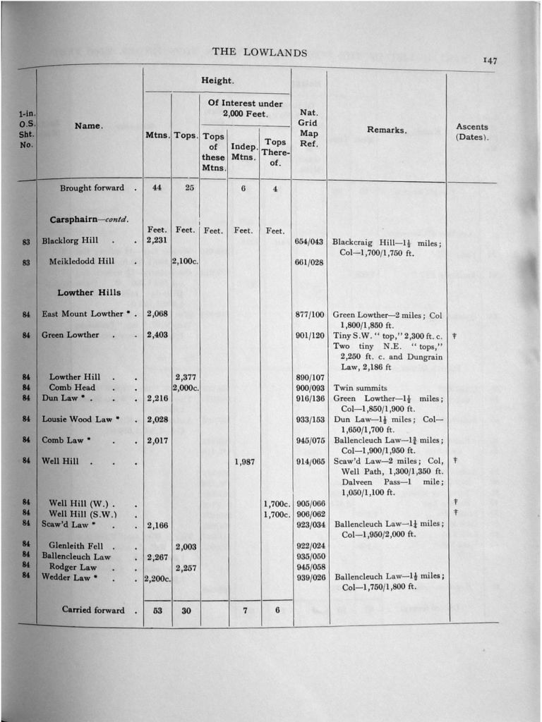 Source: Docharty, W. M. (1962) The Suppliment to A Selection of some 900 British and Irish Mountain Tops and A Selection of 1,000 Tops under 2,500 Feet – volume I. Edinburgh: Darien Press.